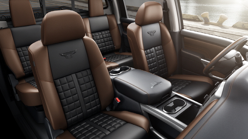 닛산 타이탄 PRO 4X는 포드 F150에 비해 더 편안한 포지션을 취할 수 있는 시트를 갖추고 있다. 승객을 최대한 편하게 앉을 수 있도록 설계된 닛산의 자랑인 제로-그래비티 시트가 기본적용되고, 열선 및 통풍 시트, 열선 스티어링 휠, 원격으로 에어컨과 시동을 켤 수 있는 리모콘, 서브우퍼가 포함된 락포드 포스게이트 오디오시스템이 적용되어 있다.