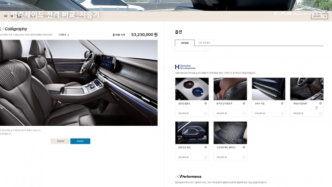가격은 가솔린 3.8모델 ▲익스클루시브 3,867만원 ▲프레스티지 4,431만원 ▲캘리그래피 5,069만원, 디젤2.2 모델 ▲익스클루시브 4,014만원 ▲프레스티지 4,578만원 ▲캘리그래피 5,216만원이다. (개별소비세 3.5% 기준)