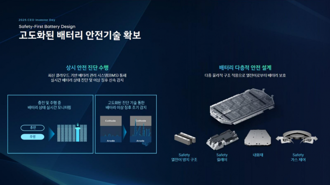이와 함께 현대차는 차세대 전기차 플랫폼 적용으로 더욱 우수한 경쟁력을 갖출 신형 전기차를 지속 시장에 내놓으며 전동화 전환을 가속화할 방침이다. 특히 현대차는 비용은 낮추면서도 에너지 밀도, 충전시간 등의 성능은 개선하고, 더 안전한 구조와 첨단 진단 시스템을 채택한 차세대 배터리 시스템을 향후 적용해 나갈 예정이다.
