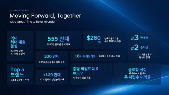 현대차는 18일(목, 현지시간) 미국 뉴욕 맨해튼에 위치한 ‘더 셰드(The Shed)’에서 글로벌 투자자, 애널리스트, 신용평가사 담당자 등을 대상으로 ‘2025 CEO 인베스터 데이(CEO Investor Day)’를 열고 중장기 전략과 재무 계획을 발표했다.