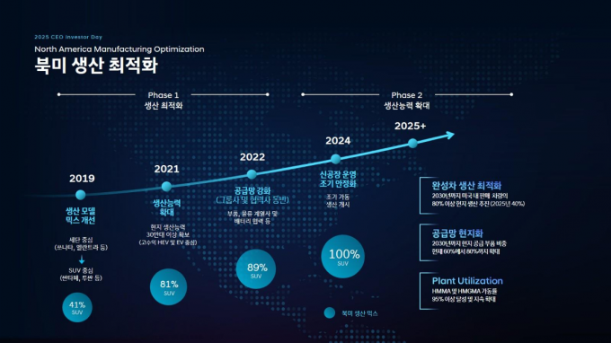 특히 현대차는 미국 시장에서 판매되는 자동차 중 현지에서 생산되는 차량 비중을 점진적으로 확대할 방침으로, 이를 위해 미국 내 두 생산기지인 앨라배마 공장과 HMGMA의 가동에 박차를 가하기로 했다. 아울러 현지 공급망 대응력도 강화해 나갈 계획이다.