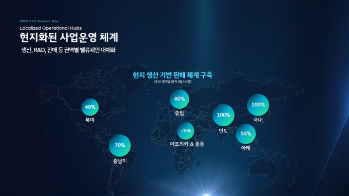 현대차는 글로벌 자동차 업계의 불확실성에도 불구하고 지난해 먼저 공개한 바 있는 2030년 글로벌 555만대 판매 목표를 이번 CEO 인베스터 데이에서 유지했을 뿐만 아니라, 구체적인 지역 판매 목표도 제시했다. 2030년 권역 별로 ▲북미 26% ▲인도 15% ▲유럽 15% ▲한국 13% ▲중동 및 아프리카 8% ▲중남미 8% ▲중국 8% ▲아시아태평양(중국 제외) 7% 등의 비중으로 자동차 판매를 추진하기로 했다.