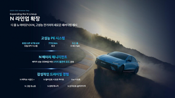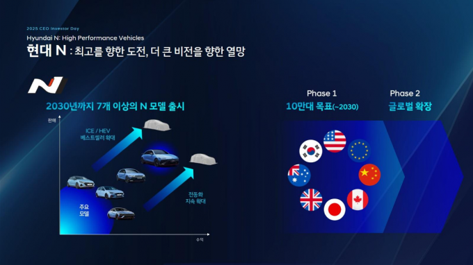 이러한 판매 성장을 위해 현대 N은 라인업 확대도 적극 추진한다. 현대 N은 현재 5개 모델(▲아이오닉 5 N ▲아이오닉 6 N ▲아반떼 N ▲i20 N ▲i30 N)로 구성된 라인업을 2030년까지 7개 모델 이상으로 확대하기로 했다. 향후 새롭게 투입될 N 모델은 글로벌 베스트셀링 차량을 기반으로 확장될 예정이며, EV 기반의 N 모델 외에도 하이브리드 시스템을 탑재한 고성능 모델 개발도 추진된다.