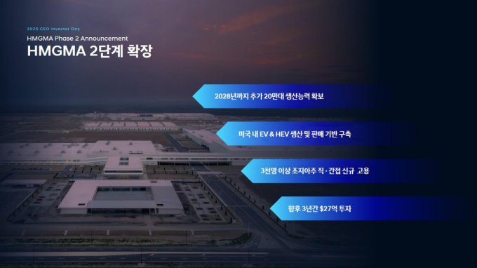 먼저 지난해 10월 생산 개시 및 올해 3월 준공식 개최 등으로 현지 생산이 본격화된 미국 HMGMA(Hyundai Motor Group Metaplant America)는 연간 생산능력을 현재의 30만대에서 2028년까지 50만대로 확대할 계획이다.