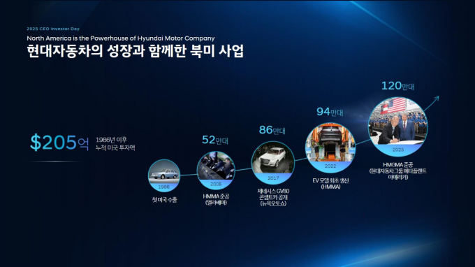 이러한 미국의 중요성을 고려해 현대차는 1986년 미국 시장 첫 진출 후 현재까지 북미 권역에 205억 달러를 투자해 왔고, 올해부터 2028년까지 향후 4년 동안 현대차그룹 차원으로 미국 시장에 260억 달러를 추가 투자할 계획이다. 제철소 건설, 자동차 생산능력 확대, 로봇 공장 신설 등이 핵심 투자 분야로 포함됐다.