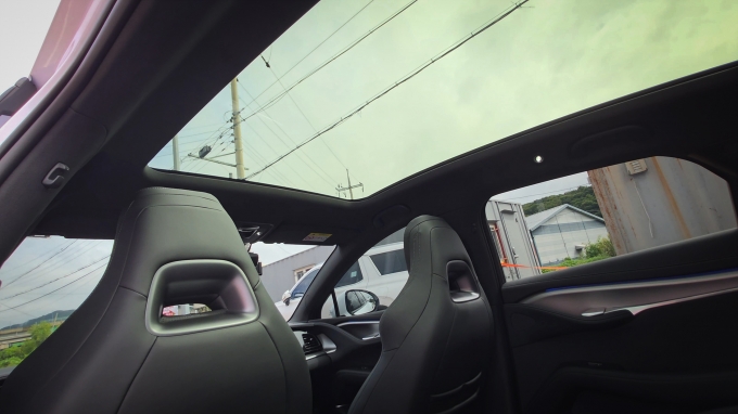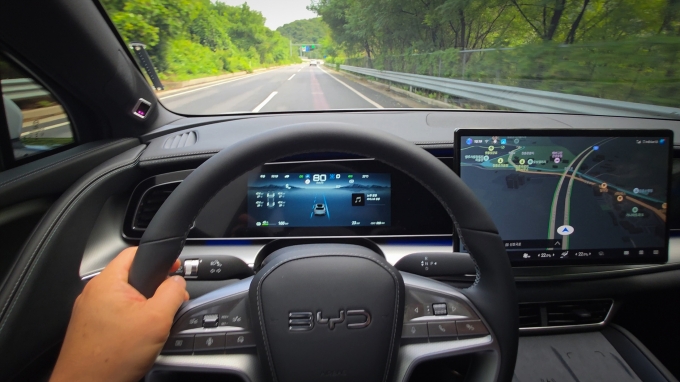 본격적인 주행에 나섰습니다. 가속페달에 발을 얹자, 일말의 망설임도 없이 즉각적으로 치고 나가는 압도적인 토크감이 온몸으로 전해졌습니다. 82.6kWh의 대용량 블레이드 배터리에서 뿜어져 나오는 전력은 시내 주행은 물론, 고속도로 합류 구간에서도 부족함 없는 강력한 가속 성능을 보여줬습니다.