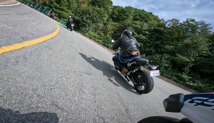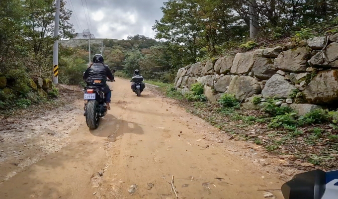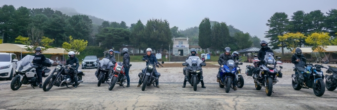 캠핑장에서 든든한 현지식 조식을 먹고, DMZ의 생태와 자연을 따라 달리는 둘째 날 여정을 시작했습니다. 어제 일정상 방문할 수 없었던 곳을 대신하여 오늘은 화천지역의 산양리 와인딩 코스와 포천지역의 관덕산 계곡을 경유하여 관덕산 정상까지 달렸습니다.