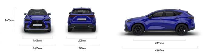 시승할 사양은 NX450h+ F SPORT. 전장 4,660mm, 전폭 1,865mm, 전고 1,670mm, 휠베이스 2,690mm의 균형 잡힌 차체크기로, 존재감 있으면서도 운전에 대한 부담이 적어 보였습니다. 너무 거대하지 않으면서도 안정적인 비례감이 느껴지는 모습에 다시 만날 NX450h+는 시승 전부터 설렘이 가득했어요.