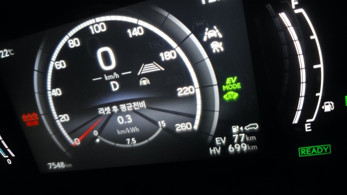 환경부 공인 56km의 EV 주행거리를 훌쩍 넘어, 실제 시승에서는 전기만으로 무려 77km까지 주행할 수 있었습니다.