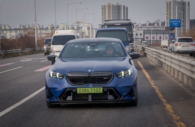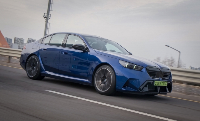 처음 마주한 신형 M5는 '역시 M!'이라는 감탄사를 절로 자아냅니다. 기존보다 웅장해진 차체는 더욱 단단하고 견고한 인상을 주지만, 그 속에 BMW 특유의 우아하고 날렵한 라인이 살아 숨 쉬고 있어요.